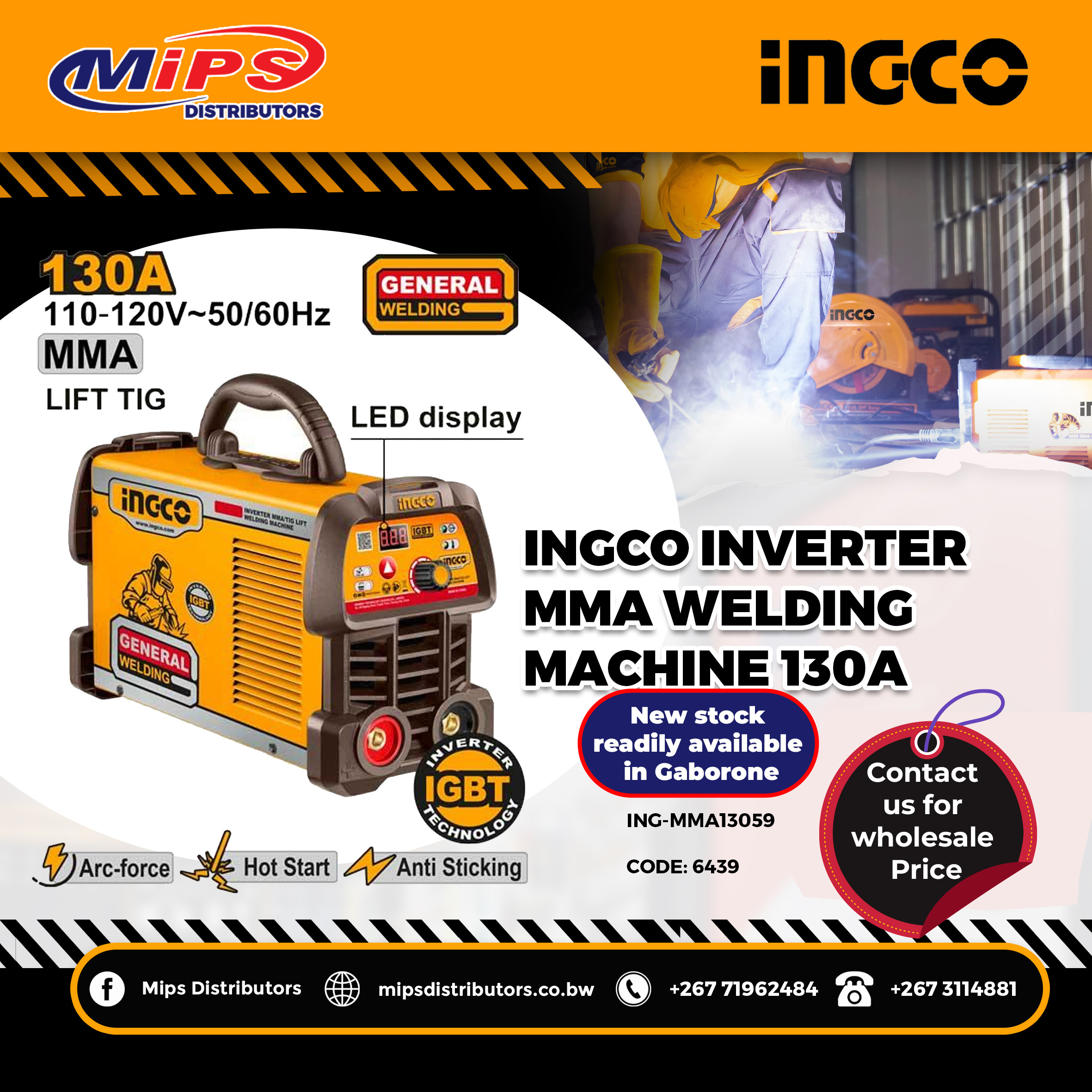 With INGCO’s trusted durability and affordability, this welding machine is the ideal choice for businesses looking for cost-effective and professional welding solutions in Gaborone and across Botswana.